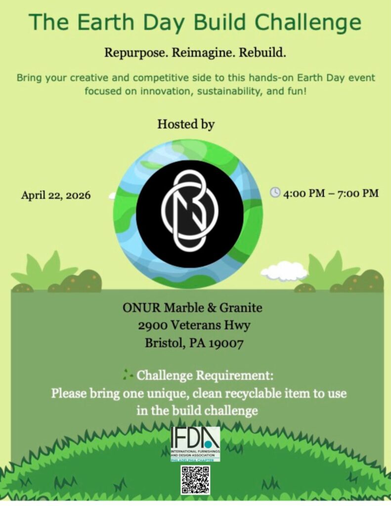 Celebrate Earth Day with IFDA Philadelphia as we blend creativity, community, and sustainability at ONUR Marble & Granite. This interactive build challenge invites you to bring one clean recyclable item and reimagine its potential in a fun, collaborative setting. Whether you’re a maker, designer, or just love a good challenge, you’ll enjoy an inspiring evening of connection, resourcefulness, and eco-friendly creativity.