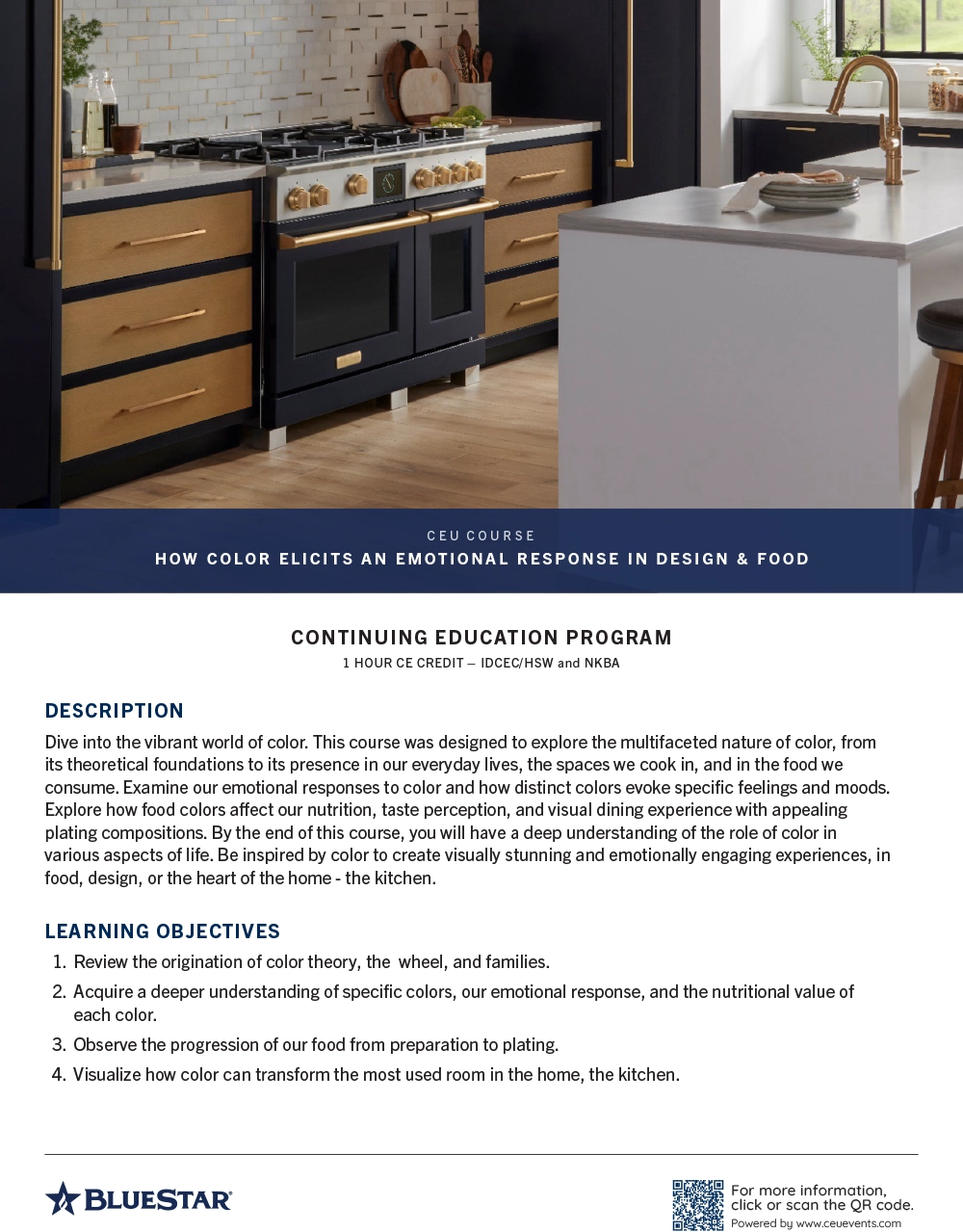 Dive into the vibrant world of color. This course was designed to explore the multifaceted nature of color, from its theoretical foundations to its presence in our everyday lives, the spaces we cook in, and in the food we consume. Examine our emotional responses to color and how distinct colors evoke specific feelings and moods. Explore how food colors affect our nutrition, taste perception, and visual dining experience with appealing plating compositions. By the end of this course, you will have a deep understanding of the role of color in various aspects of life. Be inspired by color to create visually stunning and emotionally engaging experiences, in food, design, or the heart of the home – the kitchen.
