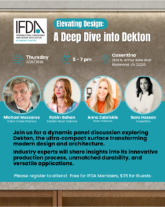 Stay tuned for more information about this special event at Casual Teak on September 18th at 11am in Gaithersburg, MD, alongside members from our neighboring IFDA Chapters!